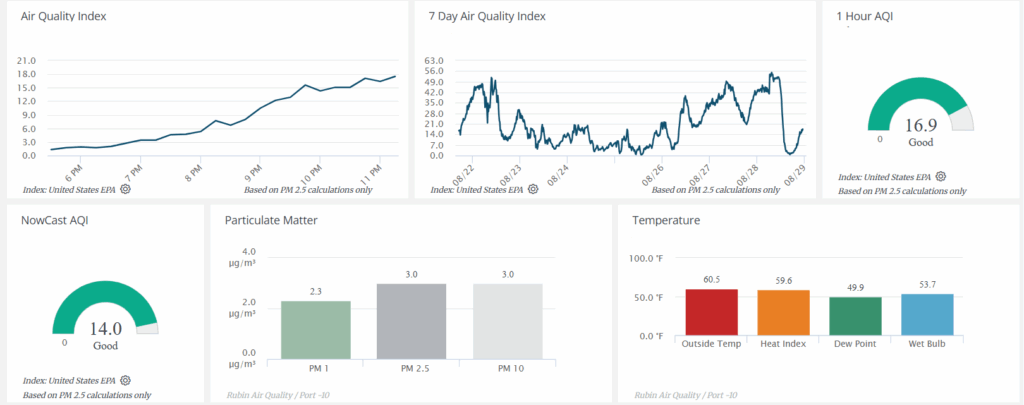 Alternatively, Davis Instruments offers the Airlink AQ sensor for just north of $200. This provides PM1 (1 micrometer and smaller), PM2.5, and PM10, in addition to AQI. This will display alongside your weather data if you happen to already have a Davis station.